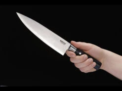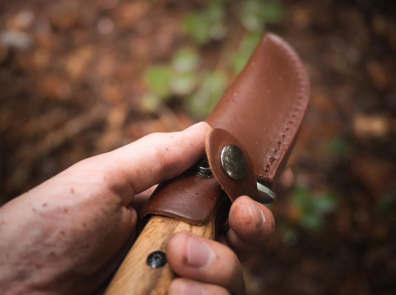 La protection prononcée de la main assure une utilisation sûre. Avec trou pour lanière et étui en cuir avec bouton-pression.