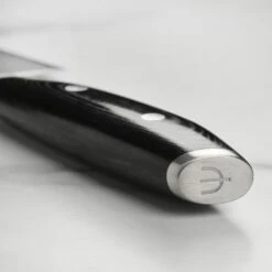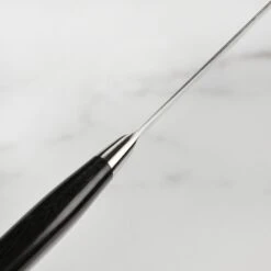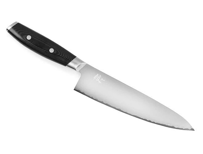 Le couteau de chef Yaxell Mon est conçu pour émincer, couper en dés et hacher toute une gamme de fruits, de légumes et autres. Avec son côté incurvé, le couteau du chef peut être doucement balancé dans les herbes fraîches ou les épices pour produire un hachis très fin.