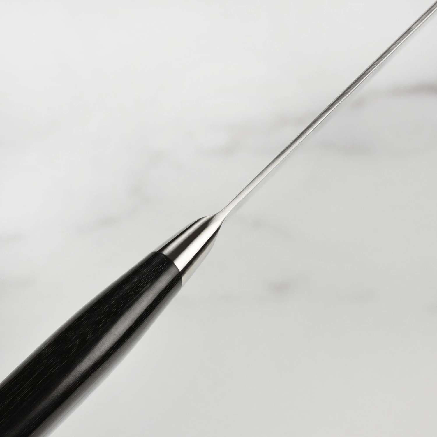 Le Couteau à Trancher Yaxell Mon est idéal pour toutes les taches de découpe. Il convient particulierement pour trancher la viande mais aussi pour lever les filets de poisson. Sa lame en San Mai la rend plus souple que ses pendants en acier damas.