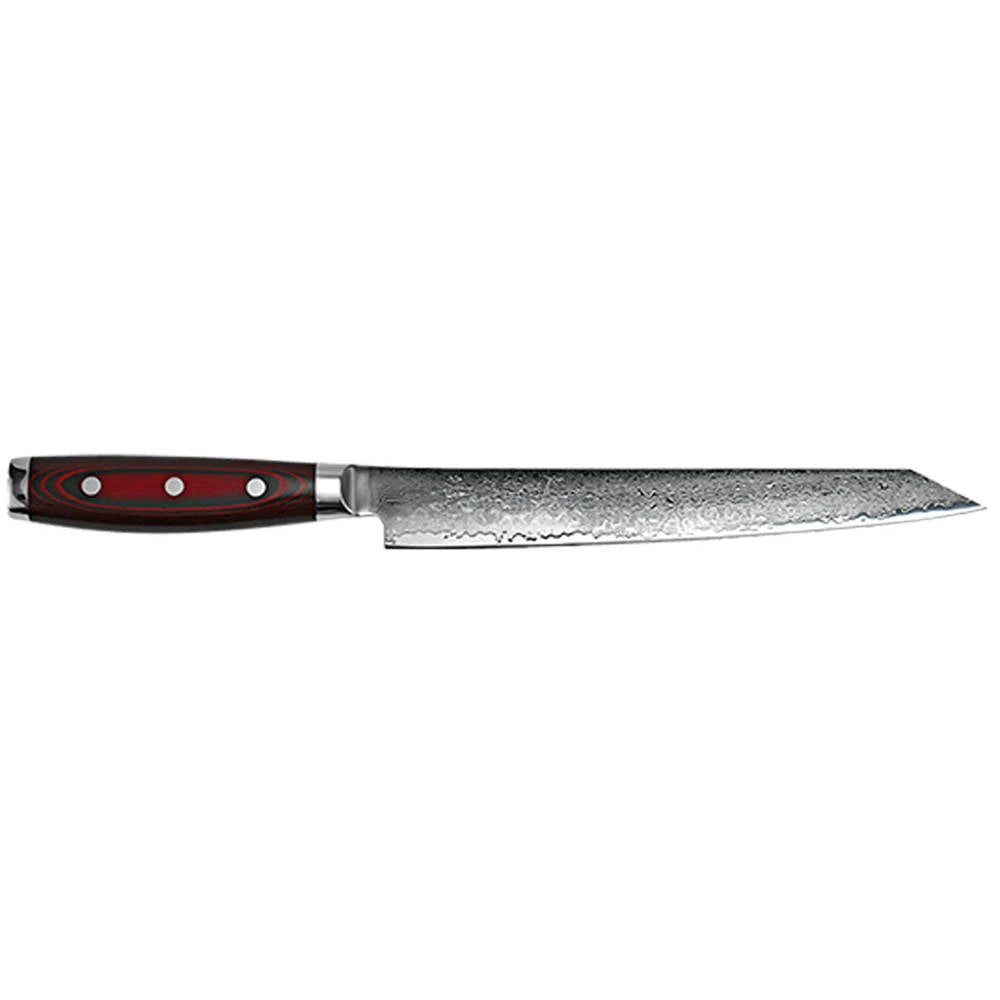 Le couteau à trancher à lame kiritsuke Super Gou de Yaxell est idéal pour une multitude de petites tâches où des coupes plus précises sont nécessaires, comme pour couper des viandes cuites comme crues ou des poissons.