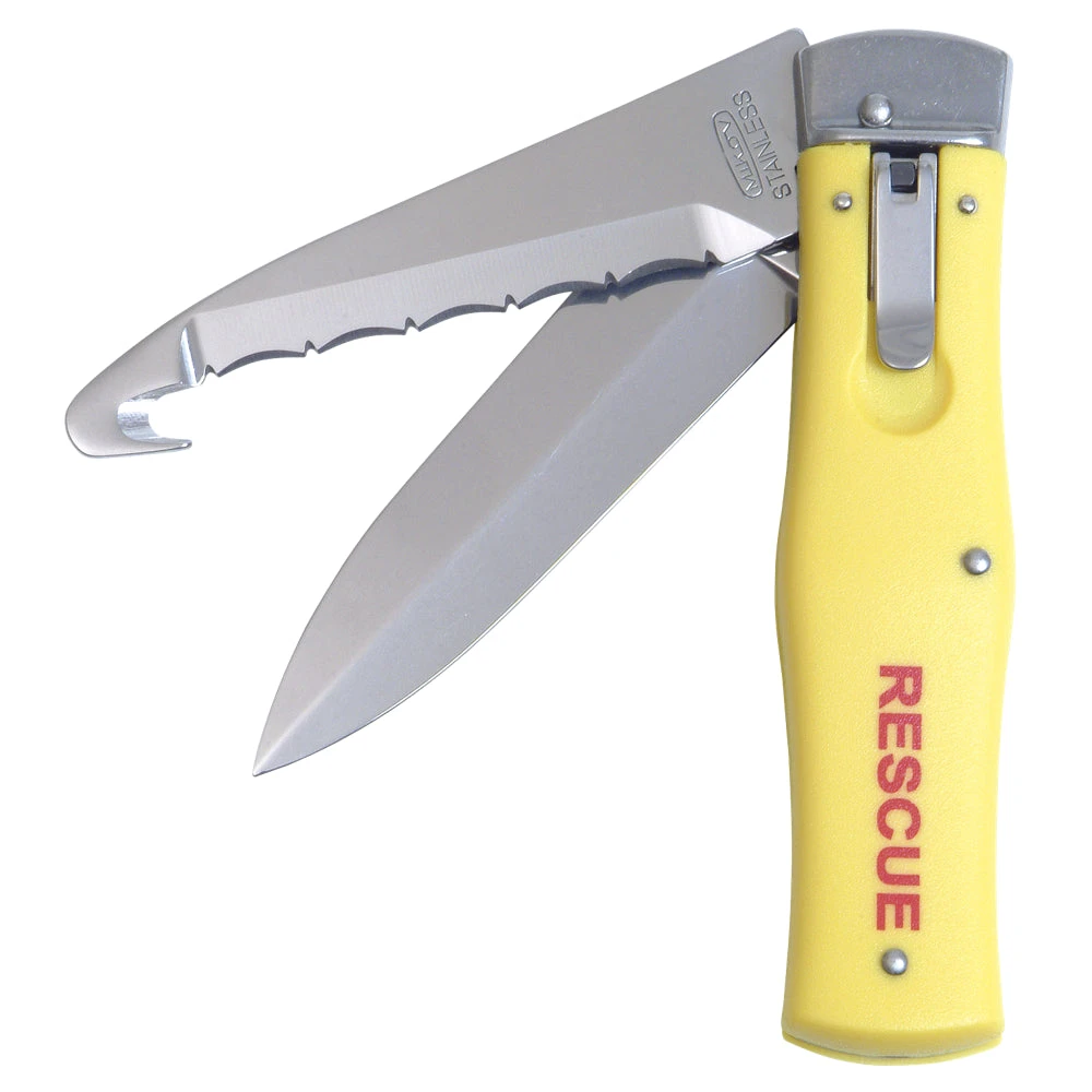 Le manche du couteau est fabriquĂ© Ă partir de matĂ©riaux ABS de qualitĂ© supĂ©rieure pour une durabilitĂ© supĂ©rieure. La couleur jaune du manche rend ce couteau facilement reconnaissable et facile Ă retrouver. Parfait pour les situations d’urgence, ce couteau est Ă©galement Ă©quipĂ© d’un clip de transport pratique pour plus de praticitĂ©.