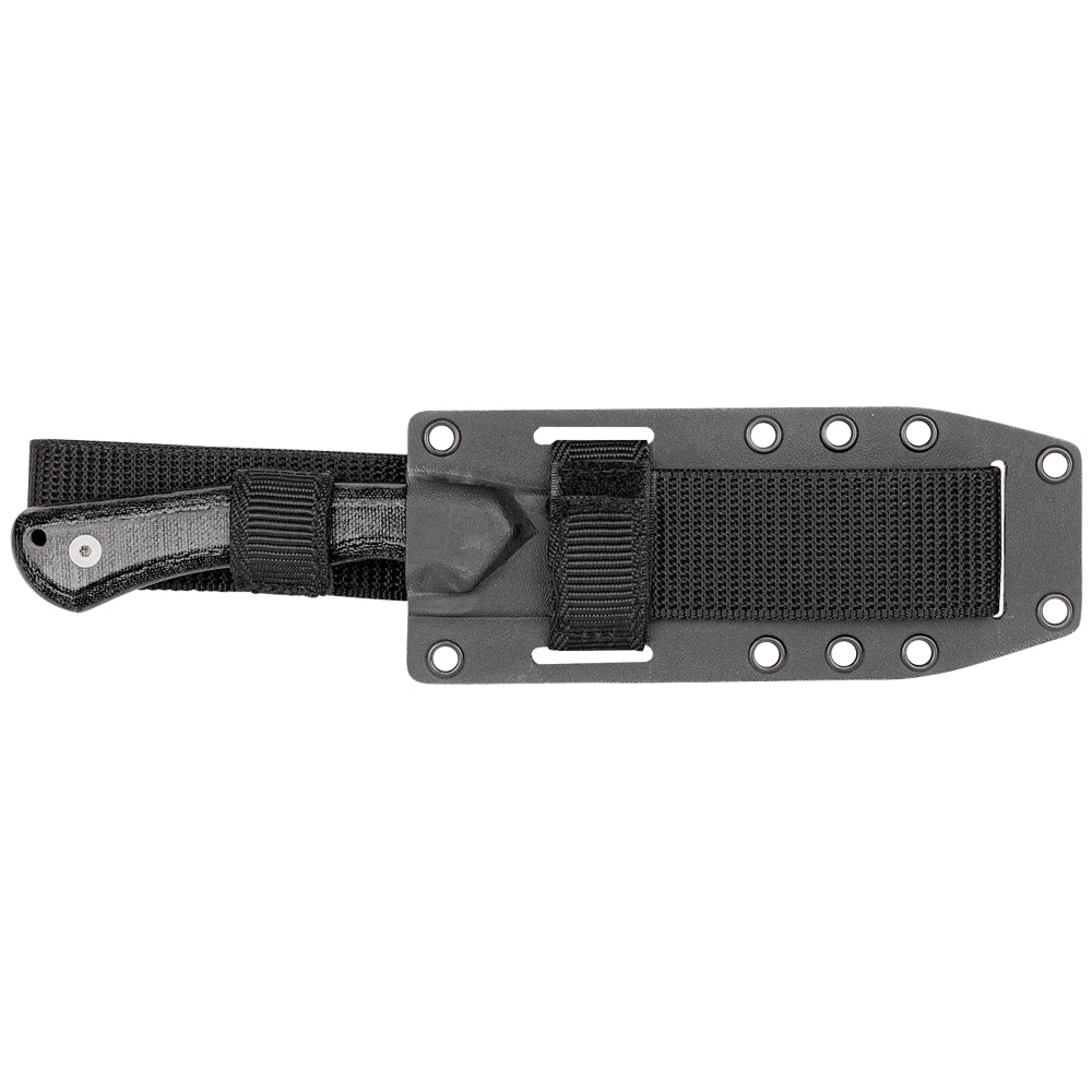 Le manche du couteau de chasse est en micarta de couleur gris. Ce matériau est reconnu pour sa résistance et sa durabilité. Le manche ergonomique du couteau offre une prise en main exceptionnelle, même avec des gants. Le nouveau designer Jason Breeden a conçu ce couteau pour être compatible MOLLE, ce qui facilite son rangement et son transport.