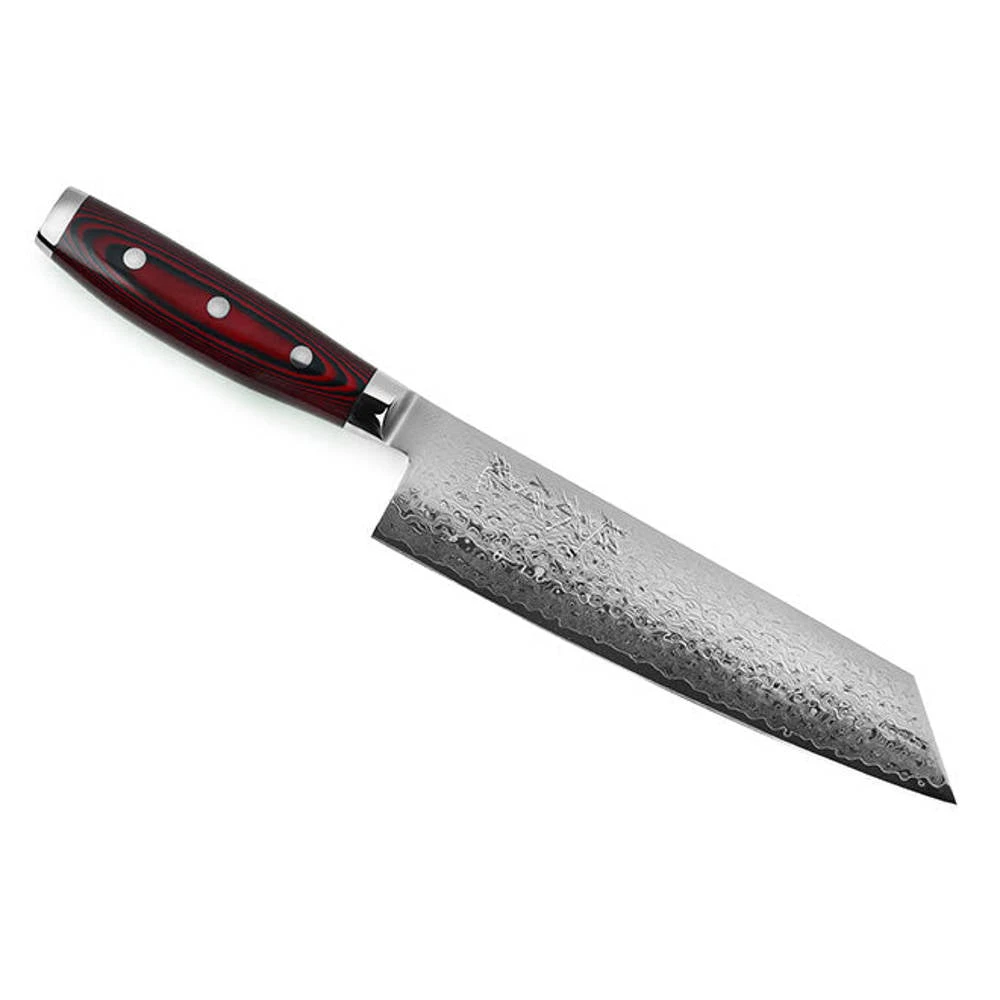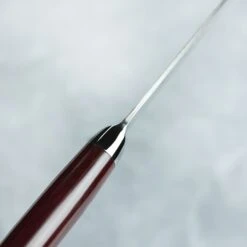 Le couteau Super Gou Kiritsuke de Yaxell est conçu pour toutes les tâches pour lesquelles vous utiliseriez un couteau de chef. Il fonctionne extrêmement bien avec les légumes, en julienne, en dés, et plus encore. Il peut également être utilisé pour nettoyer et portionner les protéines sans os, notamment le poisson, et tranche les protéines cuites avec grâce et facilité. Le bord droit ne bascule pas dans les coupes comme le ferait un couteau de chef traditionnel.