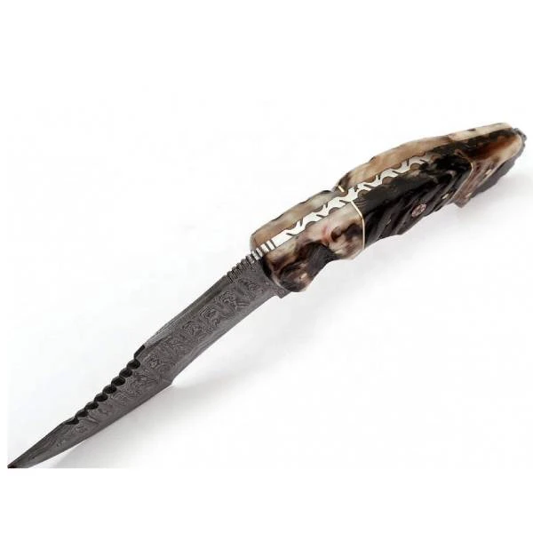 Couteau Karambit en acier Damas fait main de 127mm avec manche en corne et Ă©tui en cuir.Â