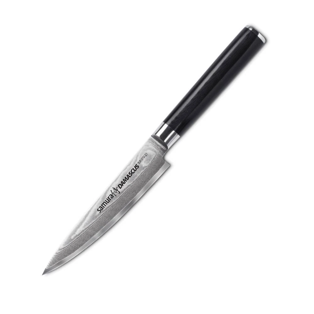 Découvrez ce Couteau utilitaire avec lame 125mm en acier japonais AUS10 et manche haute résistance en G10 de la série Damascus par Samura.