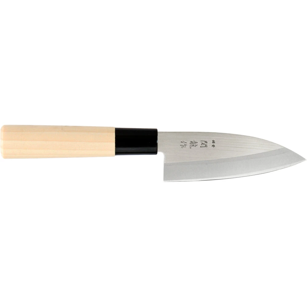 Si vous cherchez un couteau de cuisine professionnel de qualitĂ© supĂ©rieure alors le Deba Kodeba Manche Bois Sekiryu est fait pour vous. FabriquĂ© par la marque japonaise Sekiryu, ce couteau est dotĂ© d’un acier 420J très rĂ©sistant et d’une lame 110mm Ă profil dĂ©coupeur. La couleur blanche donne Ă son tranchant sa finition lisse et nette. Le manche en bois naturel offre une prise en main confortable et sĂ»re qui permet une utilisation prolongĂ©e sans fatigue.