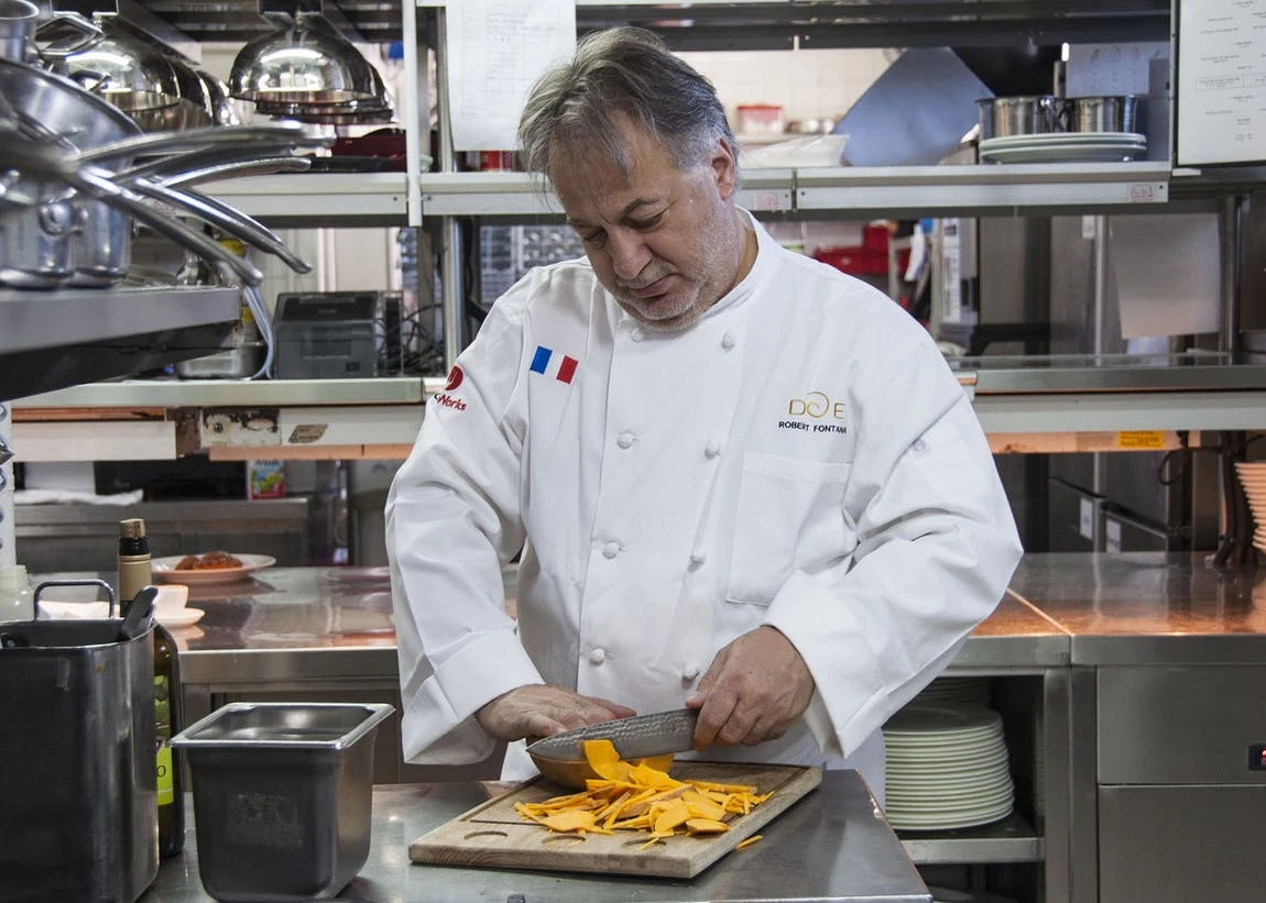 Son profil de lame – hybride entre un couteau asiatique et occidental – facilite une deÌcoupe preÌcise et rapide.