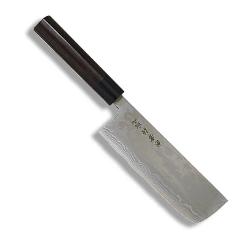 Découvrez ce Couteau Japonais Nakiri Zen-Bokashi avec lame de 165mm en acier Blue Steel n*2 et damas de la marque KaneTsune.