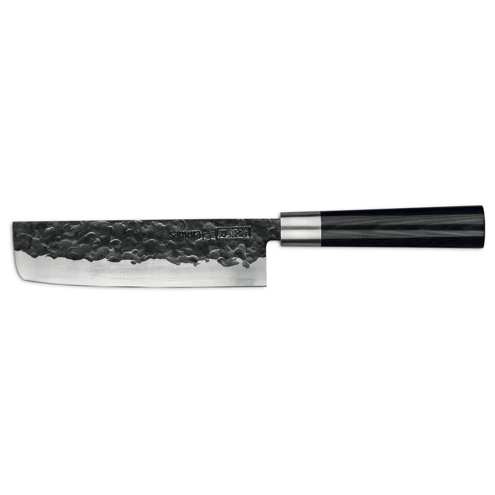 Grâce Ă son design Ă©lĂ©gant et durable, le Nakiri BLACKSMITH Manche Micarta Samura peut s’adapter Ă votre cuisine moderne afin qu’elle puisse ĂŞtre fièrement exposĂ©e sur votre plan de travail. Cet outil professionnel facilitera considĂ©rablement votre travail quotidien en vous assurant des rĂ©sultats satisfaisants chaque fois que vous l’utilisez. Si vous cherchez un couteau nakiri haut de gamme, ce produit est fait pour vous !