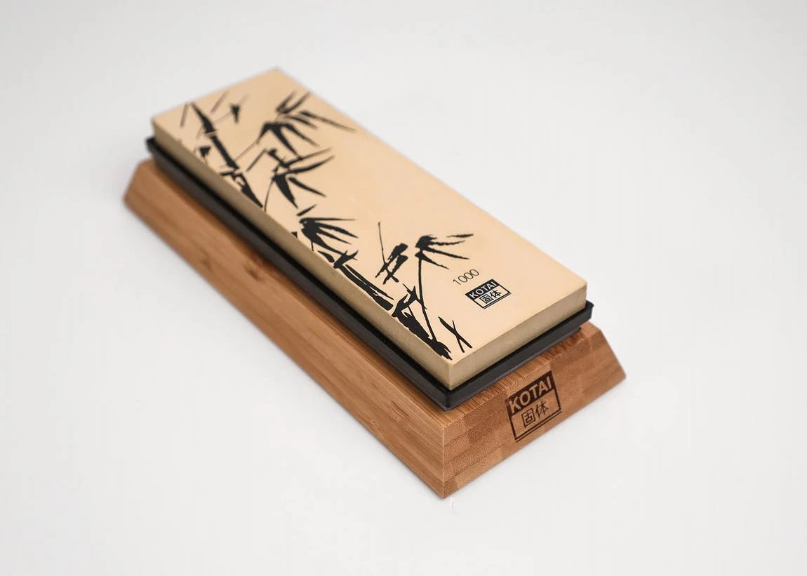 Les pierres à aiguiser, également appelées pierres à eau, sont utilisées pour meuler et affûter le tranchant des couteaux. La pierre à aiguiser double face à grain 400/1000 KOTAI vous offre deux faces : un côté abrasif à grain 400 pour reprendre les lames très émoussées, et un côté fin à grain 1000 pour mettre la touche finale et obtenir un fil tranchant comme un rasoir.