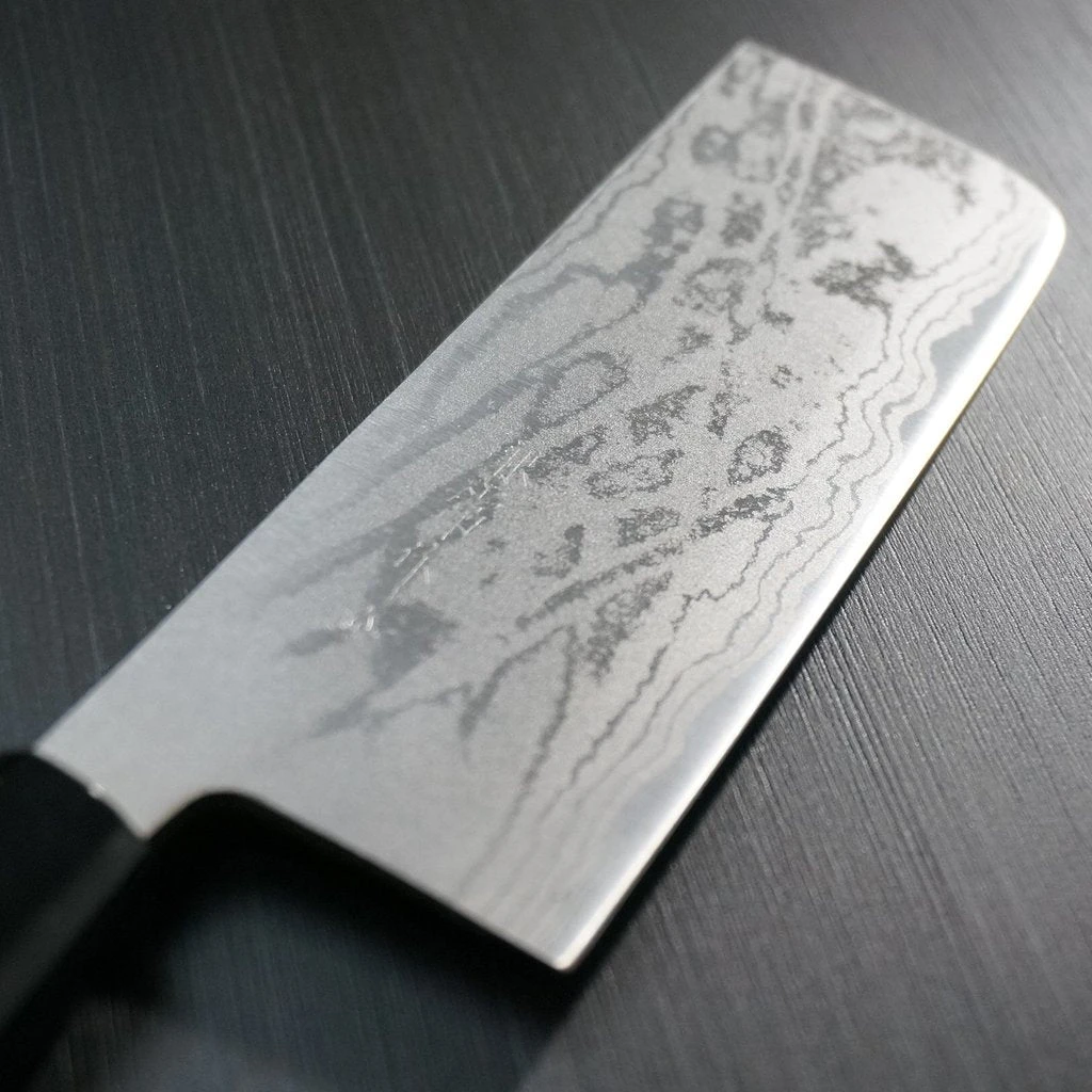 L’Ă©lĂ©gant motif en forme de vague appelĂ© du nom populaire de « Sumi Nagashi » est l’un des trĂ©sors de la culture de la coutellerie japonaise.